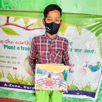 We live in a small slum area, where children go to earn money from early morning.I wanted to do something by education.one day a member of ambar dhara foundation noticed me while I was painting. And till now this foundation supporting me in all my painting career.